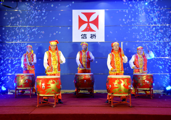 晚會(huì)在開場鼓中拉開序幕,高亢的歌曲,精彩的反串表演,激情的笛子獨(dú)奏等節(jié)目,特別是“信橋之歌”展現(xiàn)了信橋人積極奮進(jìn)的精神風(fēng)貌。周年慶的創(chuàng)意蛋糕上“專業(yè)”“做精”也展現(xiàn)了信橋公司的市場經(jīng)營理念。