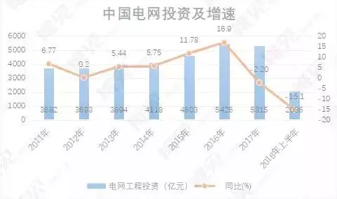 “十二五”以來,我國電網(wǎng)投資總體都保持增長,2017年電網(wǎng)投資開始出現(xiàn)首次下降。國家能源局的最新數(shù)據(jù)顯示,2018年上半年,我國電網(wǎng)工程投資金額為2036億元,同比大幅下滑15.1%。